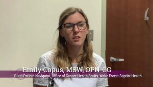 Emily Copus, MSW, OPN-CG, Rural Patient Navigator, Office of Cancer Health Equity, Wake Forest Baptist Health, says the certification adds credibility and weight to her title of navigator.